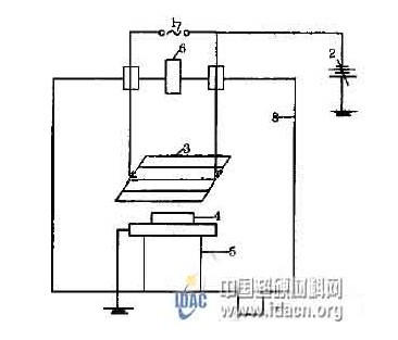 1.灯丝电源2.直流电源3.热灯丝4.基体5.样品台6.进气口7.排气口8.反应腔