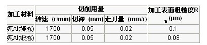 用刃磨合格的CVD金刚石厚膜焊接车刀在国产精密车床上进行加工Al棒的切削试验,切削条件及加工结果见表3。