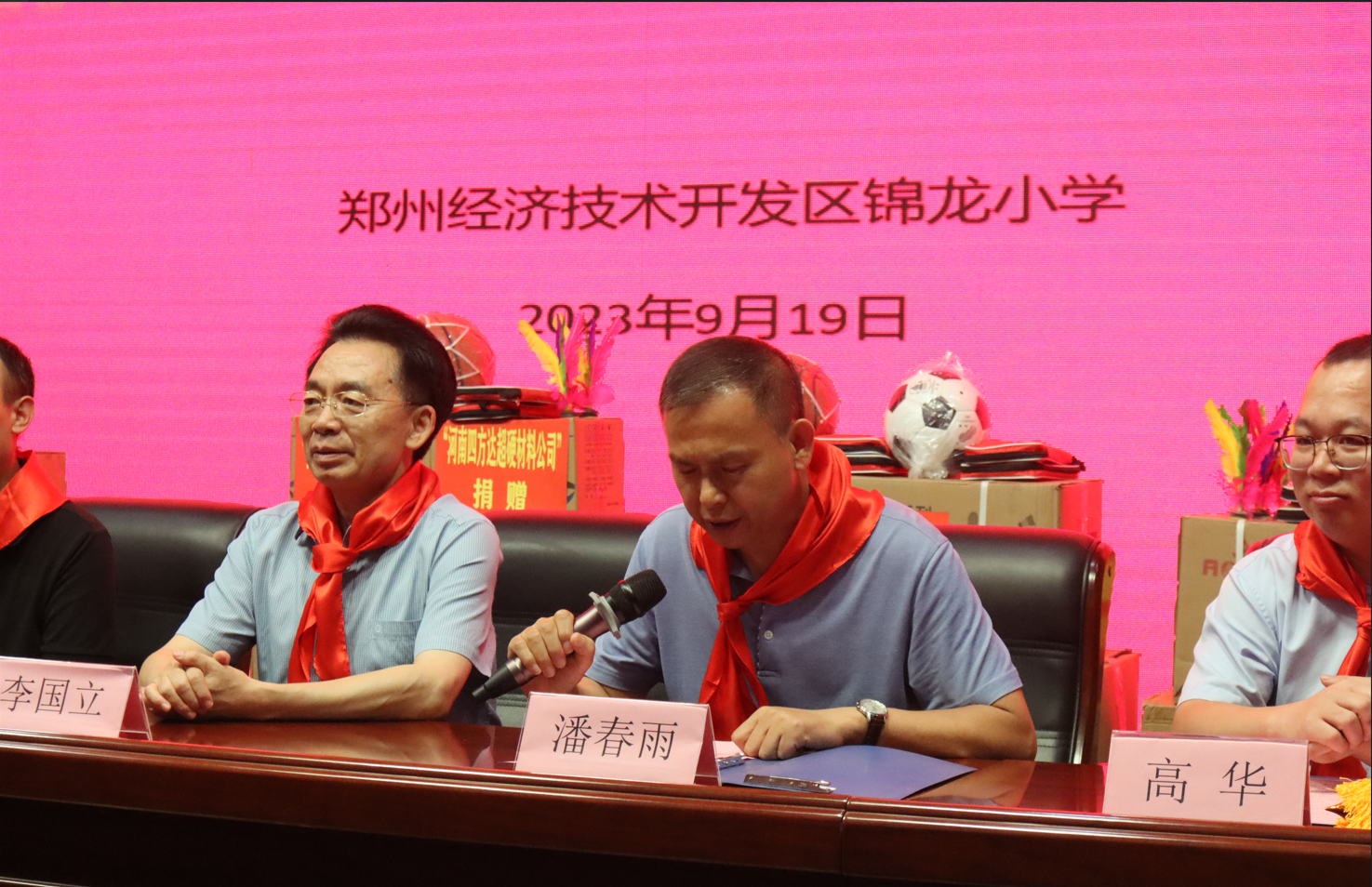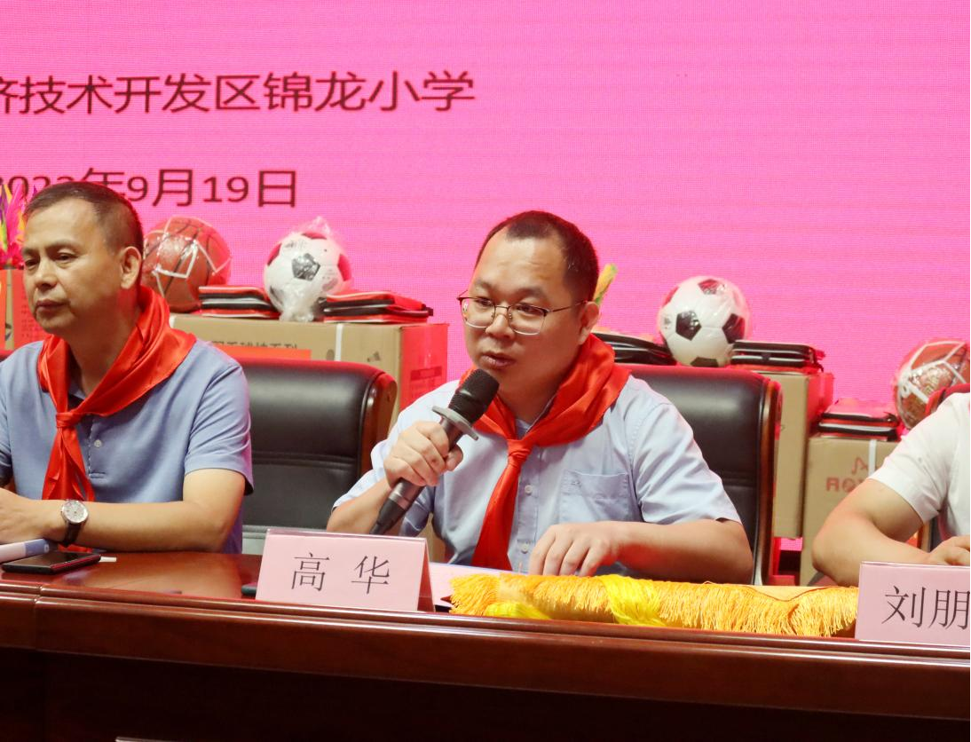 捐赠仪式上,司岚岚校长对关爱支持教育事业发展的各位领导以及爱心企业9001cc官网表达了感谢。9001cc官网总经理高华代表公司向锦龙小学进行体育益智包捐赠。