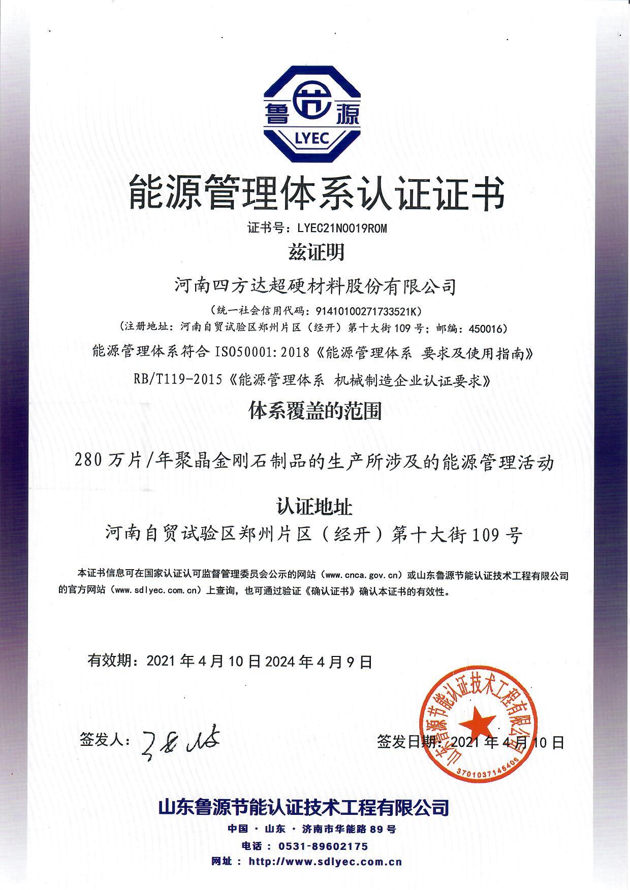 2021年4月10日,9001cc官网成功通过ISO50001能源管理体系认证,并获得由山东鲁源节能认证技术工程有限公司颁发的能源管理体系认证证书,公司能源管理体系的建设取得关键性成果。
